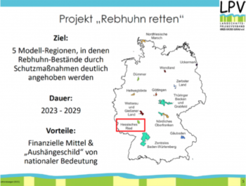 Der dramatische Rückgang des Rebhuhns ist gleichzeitig auch als eine Warnung an uns über den Zustand der Agrarlandschaft zu verstehen: Finden Rebhühner keine Lebensgrundlage mehr, gilt dies auch für eine Vielzahl anderer Tier- und Pflanzenarten, die sich denselben Lebensraum mit Rebhühnern teilen. Im Umkehrschluss sprechen hohe Rebhuhn- Bestände für einen nachhaltigen Umgang mit unserer Kulturlandschaft.