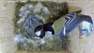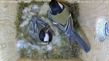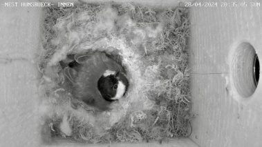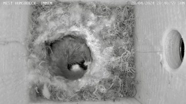 Tagsüber sind beide derzeit noch viel unterwegs und nur ab und zu im Nest.