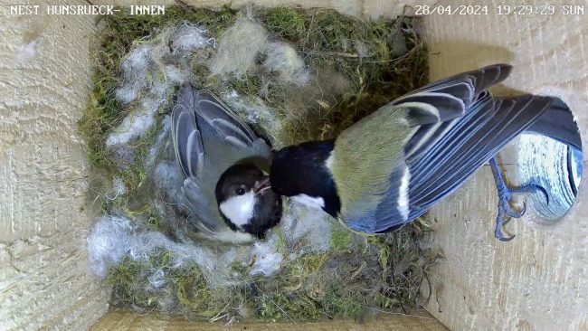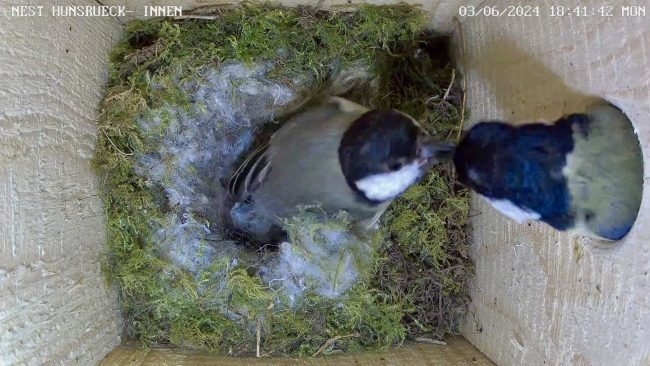 Nest wird brutfertig gemacht 09.05.2024 Nachdem der Nistkasten vor rund einem Monat von dem Kohlmeisenpaar bezogen wurde, wird er von ihnen „bruttauglich“ gemacht. Unermüdlich tragen sie verschiedenes Nistmaterial herbei. Das Männchen versorgt auch das Weibchen mit Futter, das gelegentlich schon im Kasten übernachtet. Tagsüber sind beide derzeit noch viel unterwegs und nur ab und zu…