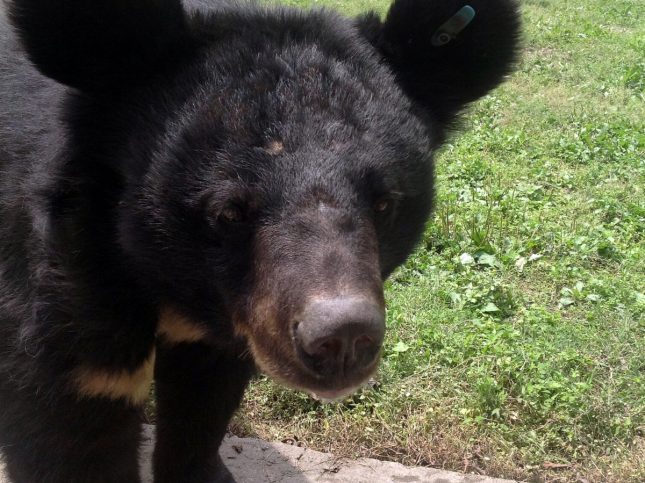 Befreiter Mondbär im Freigehege des Rettungszentrums.